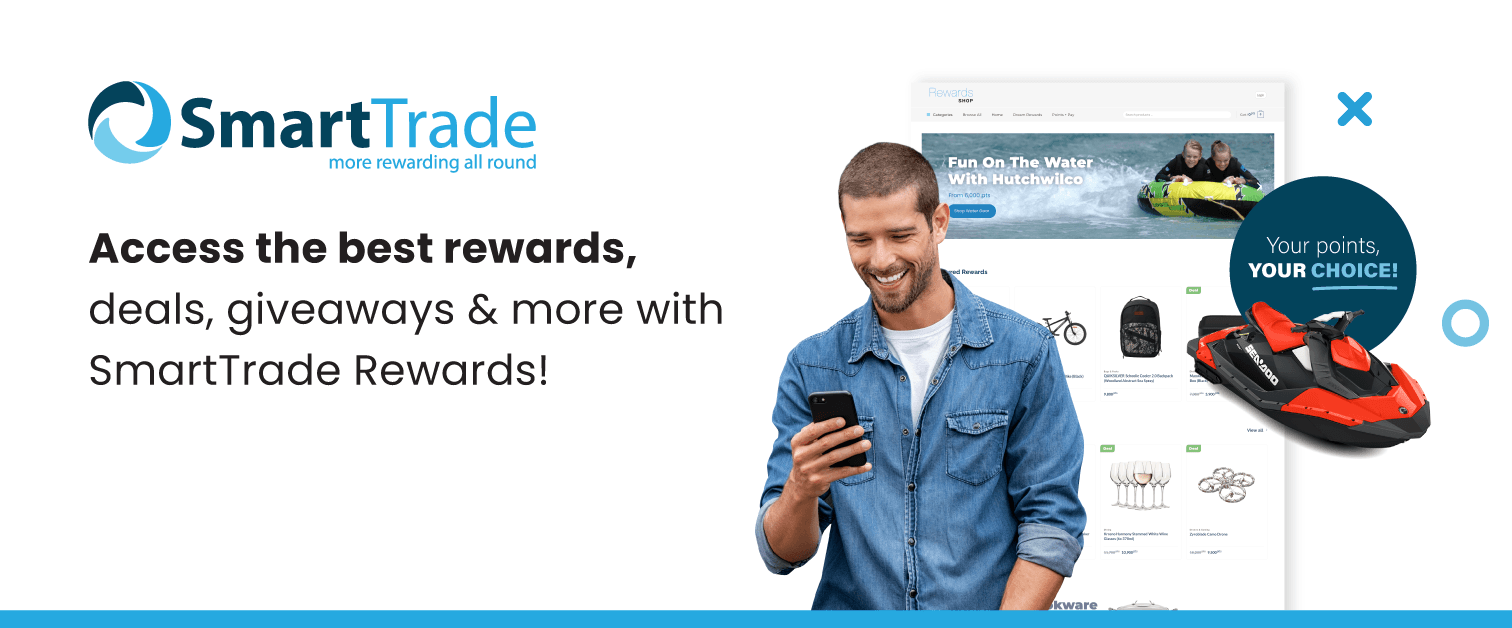 We have partnered with the SmartTrade Rewards programme to reward you, our customer, with points for every dollar you spend with us. Points can then be used to get virtually any reward you want!